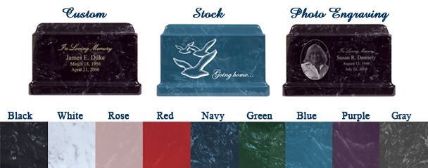 The primary purpose of the urn is encasing the cremated remains for memorializing and transport to the final resting place. Besides the functional utilitarian purpose of the urn, a selection can be chosen according to personalization features and price. Below is a small sample of urns either in stock or available to us within a day or two of selection.